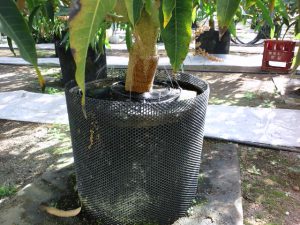 マンゴーの木というのは、ほっとくとものすごい高さまで育ってしまうらしく、あまりに高くなると木自体に栄養がいきすぎるため、鉢植えにして木自体はあまり高くならないようにして、果実に栄養を与えるようにしているようです。